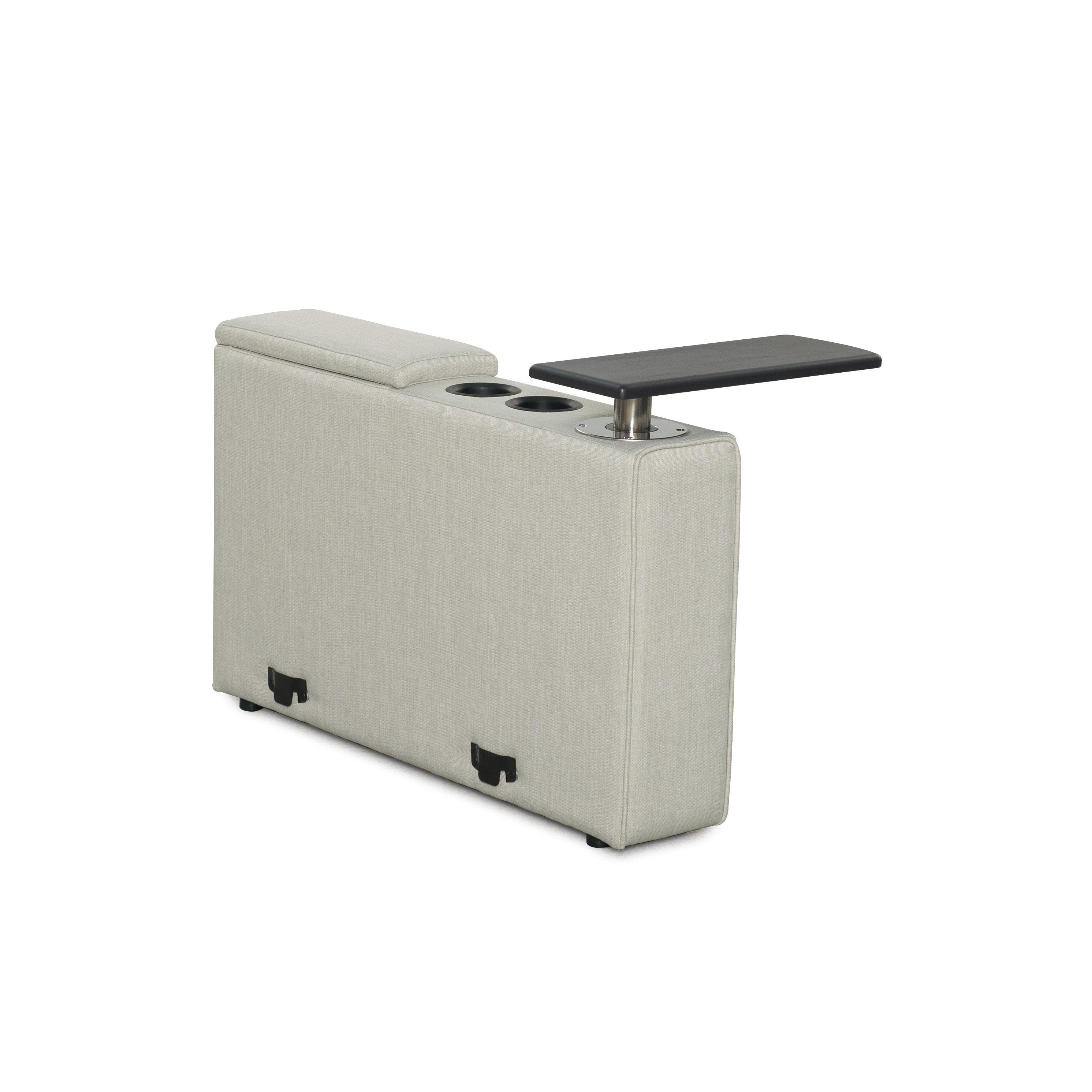 The Baron Console was specifically designed to complement the Baron seating collection, transforming media room seating into a sophisticated row of cinema-style seats. It incorporates essential features such as cup holders, USB charging ports, and a sleek swing-top table, offering both convenience and style. Additionally, the console includes a spacious storage compartment, further enhancing its functionality and elevating the overall cinema experience.